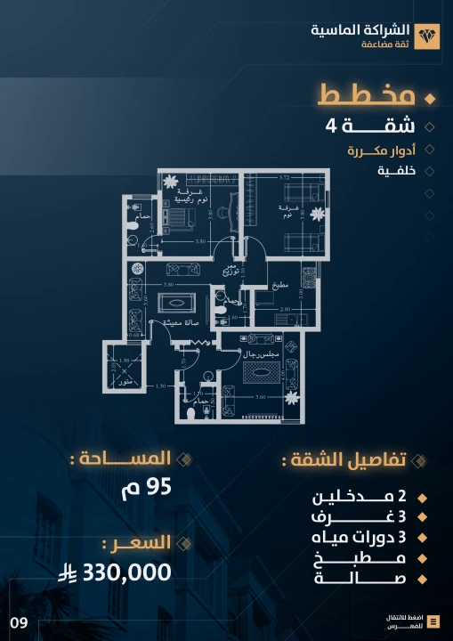 طلب اتصال | شقة في عمارة للبيع في حي بطحاء قريش | الحسين للعقار