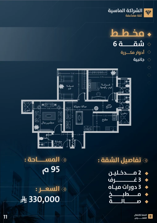 طلب اتصال | شقة في عمارة للبيع في حي بطحاء قريش | الحسين للعقار