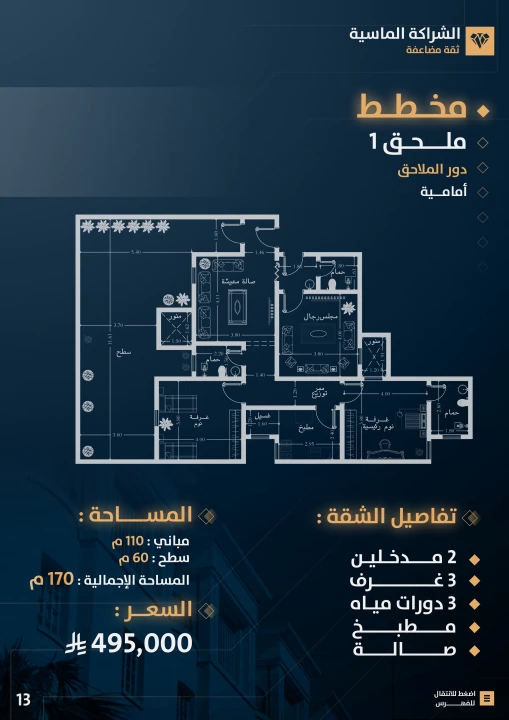 طلب اتصال | شقة في عمارة للبيع في حي بطحاء قريش | الحسين للعقار